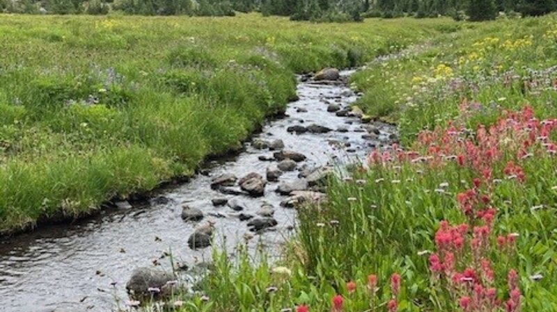 The more direct route back to the trail is following the path down the creek to Golden Lake and from there, rejoining the Green Lakes Trail. Hikers can either return to Green Lakes over the pass or travel northeast to Park Meadow and from there to the Park Meadow trail head near Three Creeks. This second option will involve hiking through over 4.5 miles of burned forest, however. Both methods can be done in a long day, those coming from Green Lakes hiking over 18 miles and those coming from Park Meadow close to 17 miles. Others could pack in camping supplies and better explore and enjoy the day in the area.